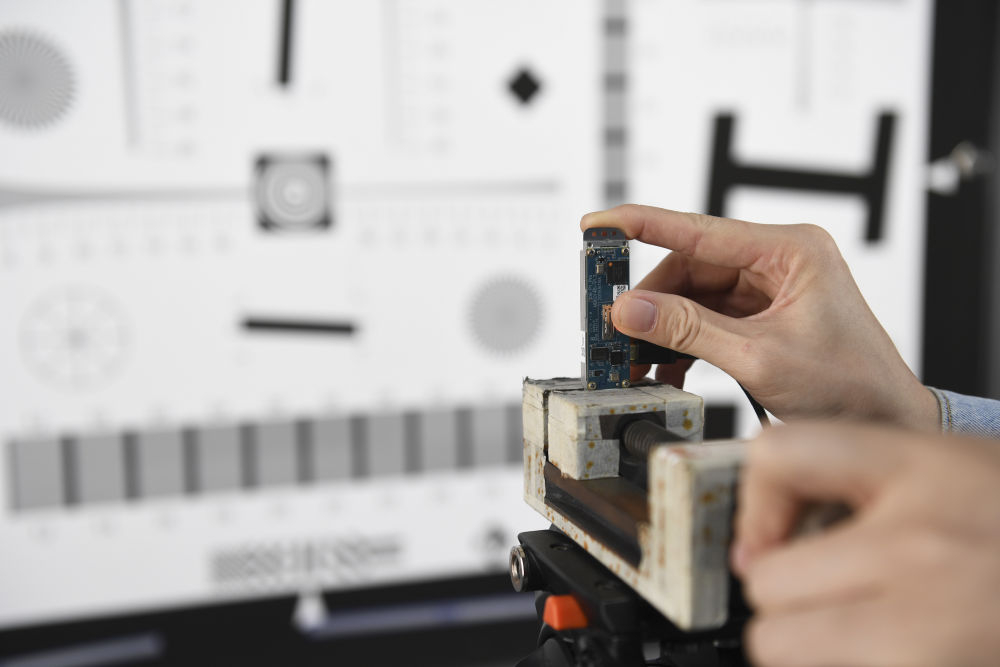 在位于深圳科技园的奥比中光科技集团股份有限公司,研发人员在视觉实验室进行3D摄像头模组测试
