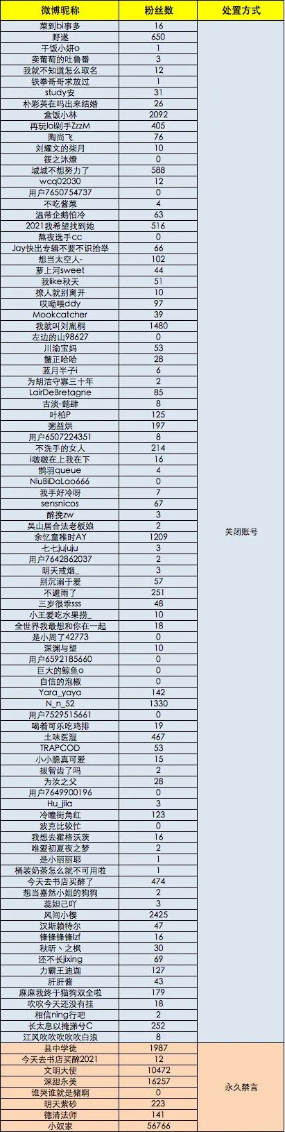 2.对于借机寻衅滋事、攻击政府机构、恶意营销蹭热点、恶意洗地等违规账号予以严肃处理。已禁言和永久关闭账号共990个。(部分处置账号见配图)