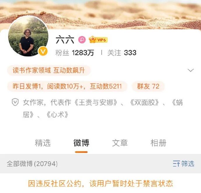 近日,此前曾帮吴亦凡站台的多名大V,包括六六、苏芒、马薇薇等微博因违反社会公约被禁言。