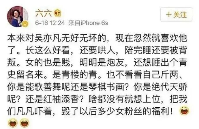 不论上述言论是表达真实想法还是在调侃,既然发表出来,其性质显然是清楚的。部分粉丝之反智让人叹为观止,极端饭圈文化发展至此,也可谓登峰造极。