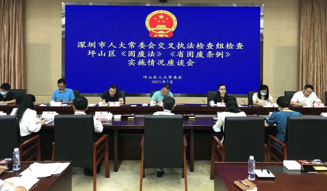 7月30日上午,按照市人大常委会工作部署,龙岗区人大常委会副主任郭雁通带队,组织市人大常委会交叉执法检查工作组到坪山区检查固废法、省固废条例贯彻实施情况。区人大常委会副主任江国初,区人大常委会财经和城建环资工委主任舒媛,以及市生态环境局坪山管理局等7家单位负责同志参加活动。
