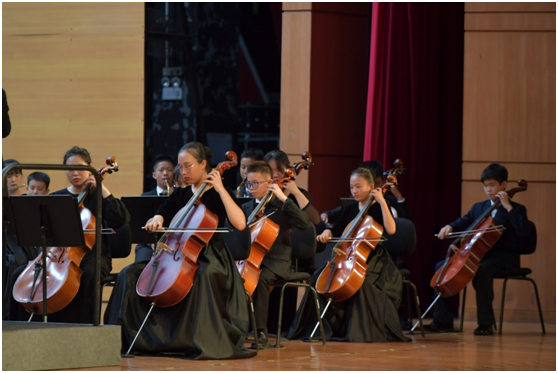 阵容庞大的管弦乐队技艺精湛,配合默契,为此次高水准演出提供了有力保证。据了解,宝安区青少年管弦乐协会为培养宝安区青少年管弦乐人才做出突出贡献,此次开幕式中有着精彩表现的白龙飞是中国青年交响乐团小号首席,毛冉曾以第一名全额奖学金的优秀成绩被中央音乐学院录取。