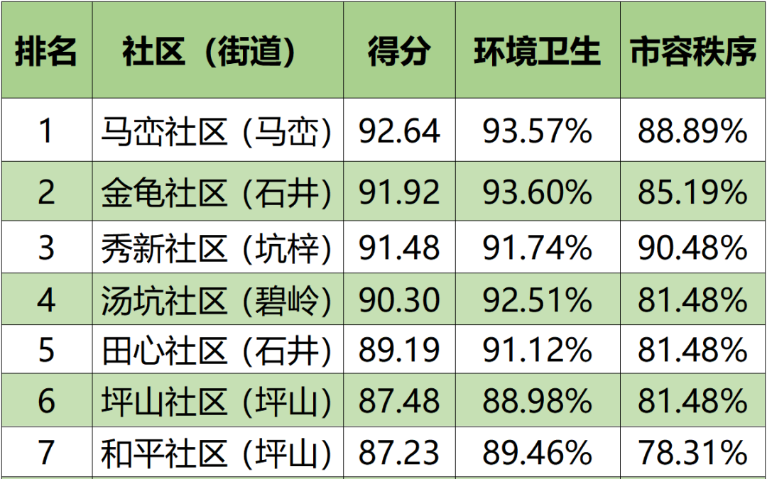 市容环境是城市文明的窗口,体现城市的文明水平。近日,坪山新一期社区市容环境指数测评结果出炉啦!具体情况怎么样,快和发布君一起来看看吧。