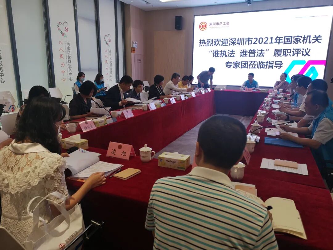 今天(8月4日),在深圳市司法局党委副书记、副局长蒋小文的带领下,市“谁执法谁普法”履职报告评议活动专家评议团(以下简称“考察团”)一行继续开展实地考察,走进深圳海关、深圳市总工会(以下简称“市总工会”)、深圳市水务局(以下简称“市水务局”)三家评议单位。考察活动同样采取了座谈了解、实地观摩、查阅资料等形式开展。