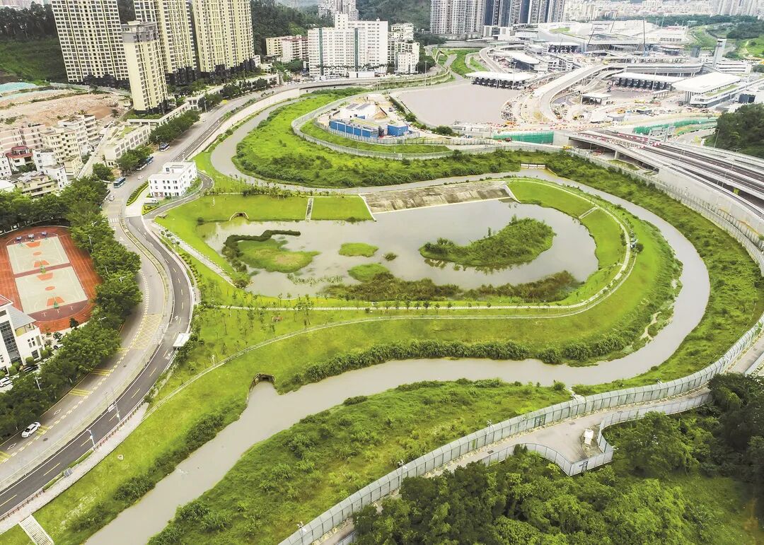 整治深圳河工程,最大项目是建造蓄洪湖泊。湖泊占地22000平方米,可处理蓄洪量达80000立方米,用以控制深圳河与平源河交界的下泄流量。蓄洪湖泊在不蓄洪的时候,则为河滩湿地,有芦荡、草滩、蒲翠花语和绿意杉林的天然景观,为白鹭、苍鹭等鸟类提供栖息地方,是一个具生态价值的可持续基础设施。