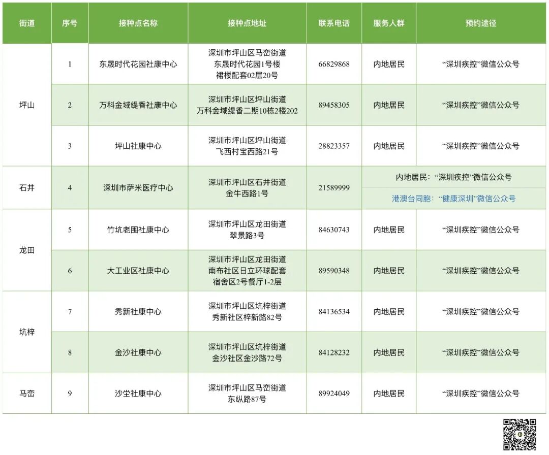 12-17岁坪山区未成年人群接种点具体安排