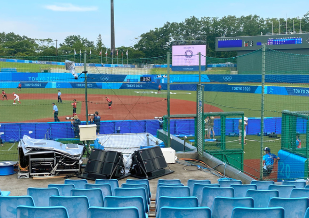 在福岛市的吾妻棒球场上,东京奥组委在观众席与赛场之间的空地上准备了音响,模拟环境的“窸窸窣窣”与“沙沙”声里,夹杂着几声“噢”“哈”“嗖”。在现场的《朝日新闻》记者表示,闭上眼睛时的确有种“身处人群中”的感觉。
