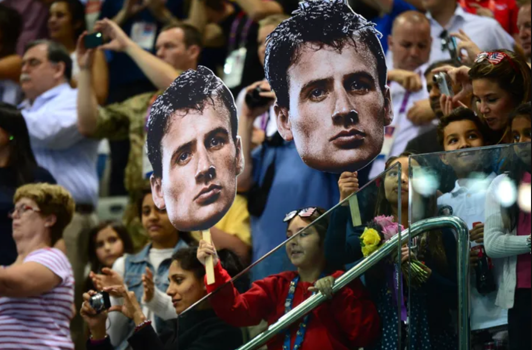 2012年伦敦奥运会上,粉丝为瑞安·洛奇特制作的人脸应援牌 图片:赫芬顿邮报