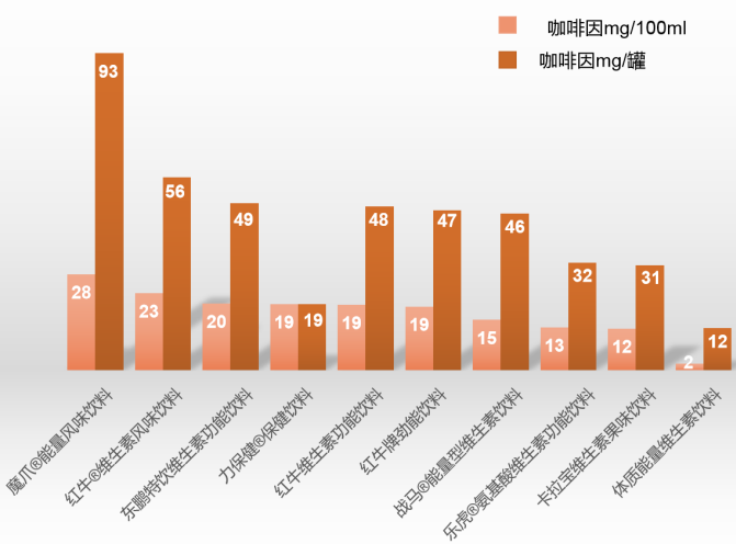 2. 本次比较试验选择的样品均是含有牛磺酸、咖啡因及维生素类的功能性饮料;