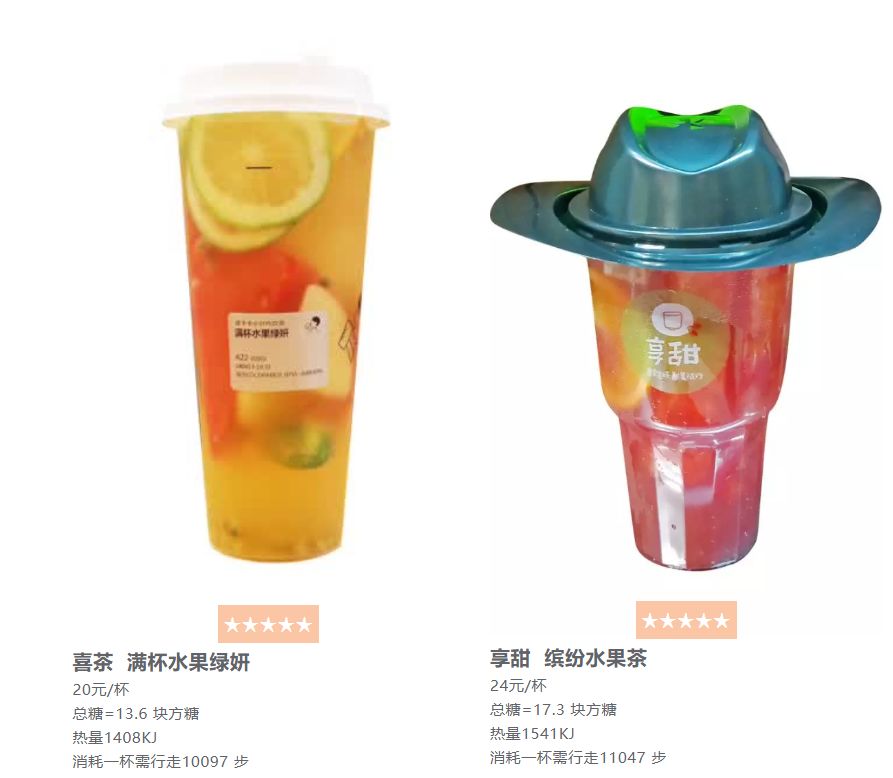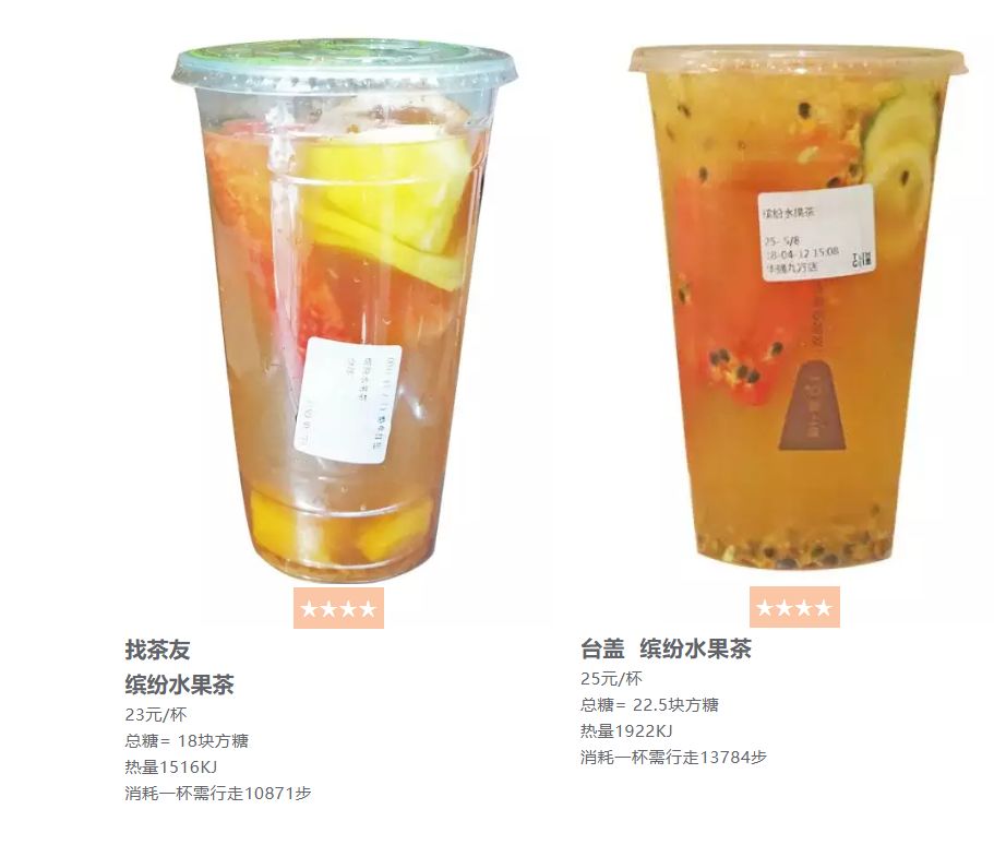 按消耗1千卡需要走30步算,喝杯水果茶比喝有奶盖果茶和芝士类饮料可以少走2868步!
