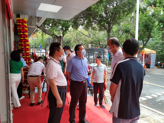 在开业现场,项健副主席与蓝姥姥、宝农链公司代表深入交流,并详细询问今年以来都安农产品销售渠道、市场占有量、发展规划、营销策略等,重点关注宝安区扶持的“贷牛还牛”扶贫产业,从“农场”到“餐桌”、从“田间”到“舌尖”如何实现最后一公里的无缝连接。