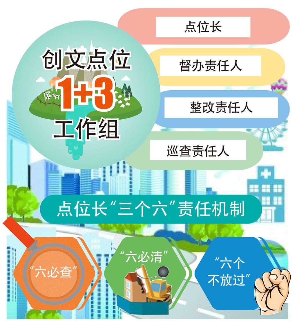 吴志伟指出,要确保创文工作落实落地落细,全区88名点位长要将测评标准内化于心,外化于行,充分发挥每个点位“1+3”工作组(即“点位长”及督办责任人、整改责任人、巡查责任人)的工作合力,一条一条对照,缺啥补啥,做到“无死角”“一眼清”,使每一个点位的创文工作走深走实、见行见效。要压实责任,严格落实点位长“三个六”责任机制。全区483个测评点位的88名点位长要以问题为导向,举一反三,真正把创文工作要求融入到自身所分管的各条块日常业务工作中,落实巡查督导和整改提升责任,确保分管的点位对标达标。