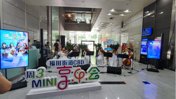 8月18日,福田街道CBD周三“MINI享乐会”弦乐专场在新华保险大厦一楼举办。