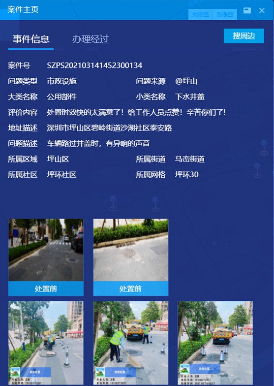 坪山区民生诉求服务中心工作人员从系统看到,上报点为马峦街道坪环社区泰安路。经过预受理、立案程序,11点11分,案件分拨派遣到相应责任单位坪山排水有限公司。11点12分,坪山排水公司调度人员签收案件,随即派出工作人员进行处置。11点31分,工作人员到现场勘查,对问题井盖进行了更换,并将道路打扫干净。12点53分,“责任单位处理完成。”民生诉求中心将办理情况反馈给市民。市民评价:“处置时效快得太满意了!给工作人员点赞!辛苦你们了!”