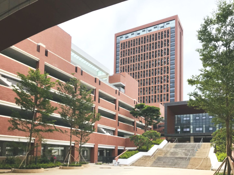 深圳中学坪山创新学校在建筑设计上秉承深圳中学的建筑设计风格和“中国红”的基调,聚焦未来学校的设计标准和“书院漫步”的设计理念,呈现典雅端庄的“学院式”建筑风格和“前庭后院”的中国传统园林布局。