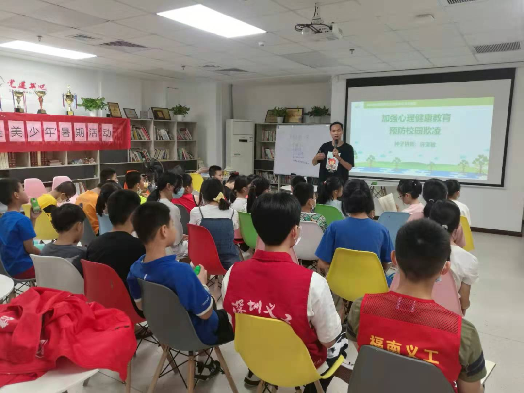 本次系列活动内容包含中医、心理健康、爱国主义教育、经典阅读、社会实践等五大主题,共计开展了30场,参与人数900余人次。活动也获得了福田街道退役军人服务站、福南社康、福田区派出所、中铁一局、深粮控股、邮政银行、生科基金会、金凤凰社工服务中心、多视点眼科、金凯翔教育集团等十多家爱心企业和单位的大力支持。