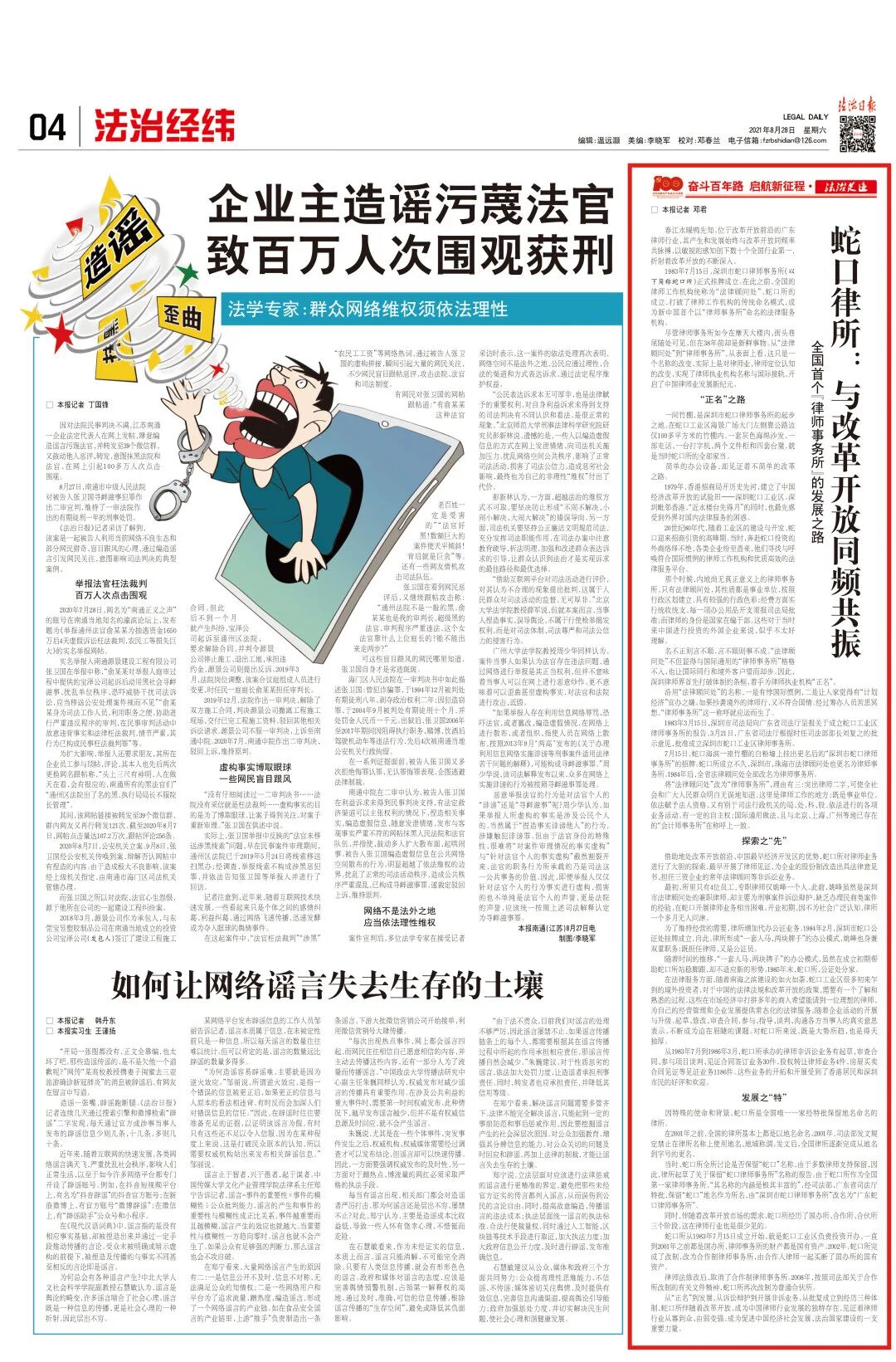 同时,伴随着改革开放市场的需求,蛇口所经历了国办所、合作所、合伙所三个阶段,这在律师行业也是很少见的。