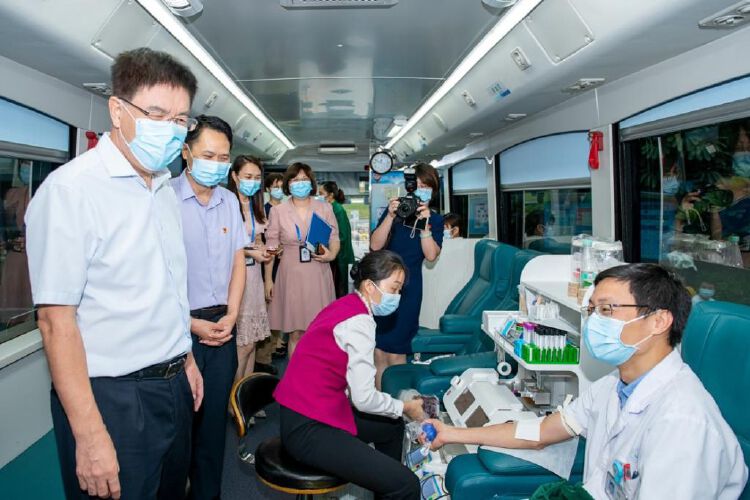 深圳市血液中心主任宁理、广州中医药大学深圳医院(福田)党委书记张天奉到献血活动现场看望并慰问参与献血的医务人员。宁理代表深圳市血液中心向医院颁发了感谢奖状,为保障深圳人民生命安全和身体健康的医护人员表示诚挚感谢。