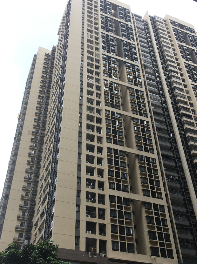 记者站在杨箕小区外看到,部分家庭的阳台未全面防护。