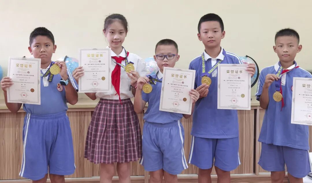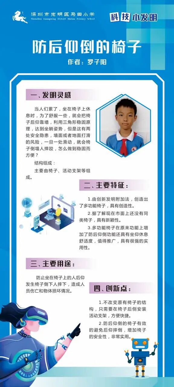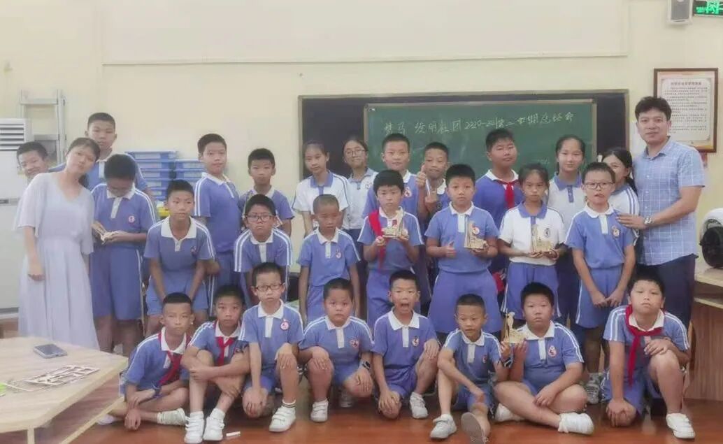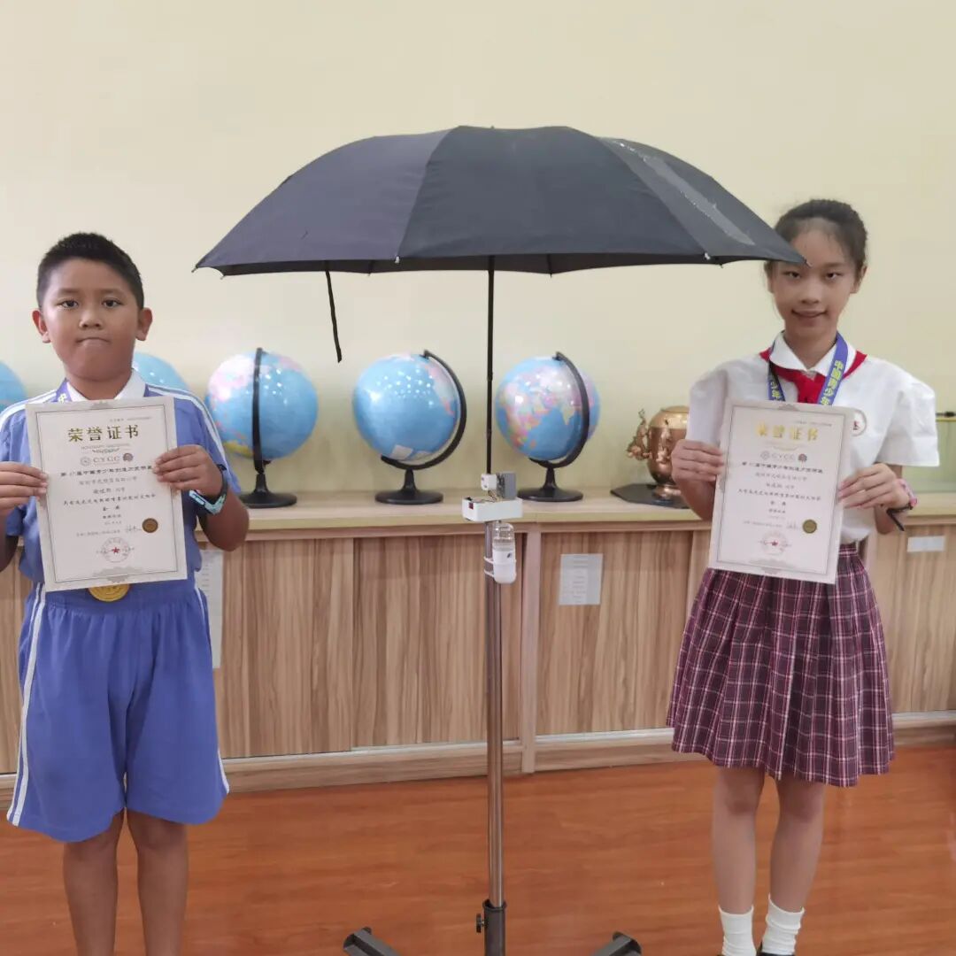 此次全国青少年创造力发明展上,马田小学6位学生在激烈的角逐中脱颖而出。其中,获得金奖的作品有:五(4)班林成钰、四(4)班谢峻熙两位同学作品《具有追光充电照明喷雾功能的太阳伞》、五(1)班罗嘉文、四(5班)曾志涛两位同学作品《行李箱远离报警手环》、四(3)班罗子阳同学的作品《防后仰倒的椅子》。获得银奖的作品有:五2班张辰熠同学的《基于超声波技术的汽车开门自动防刮蹭装置》。比赛中,6名小学生的小发明作品独特新颖,具有创造性精神,得到评委老师的肯定与点赞。蔡太平、江建妹老师荣获“优秀创新辅导教师”奖。