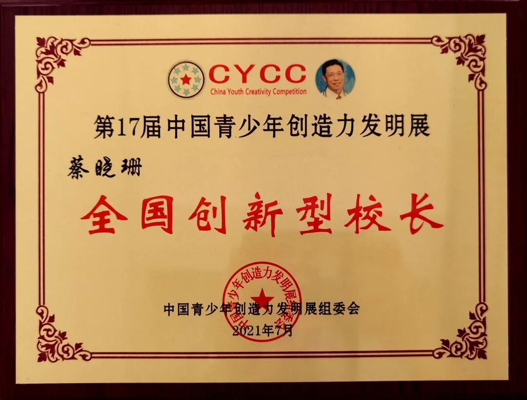 学校被授予 “全国创新型学校”荣誉称号,全国仅有十所学校获此殊荣。