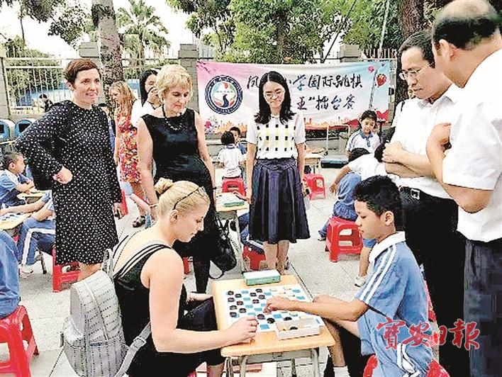 国际友人参加凤岗小学每周一次的小棋王擂台赛。