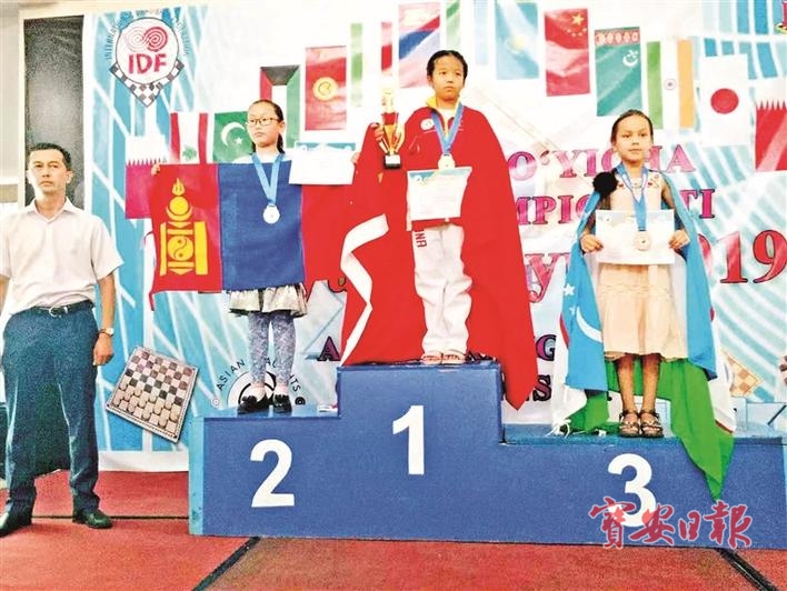陈语曦同学2019年参加亚洲少年儿童国际跳棋锦标赛为中国夺得亚洲冠军。