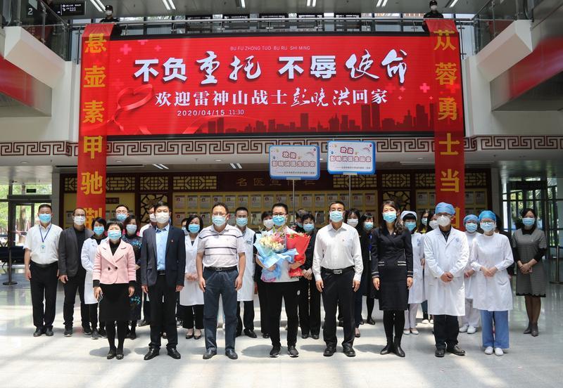 “欢迎雷神山战士彭晓洪回家”,4月15日,北京中医药大学深圳医院(龙岗)支援武汉雷神山医院彭晓洪医生平安返岗。为迎接他的归来,医院举办了简单而隆重的欢迎仪式。