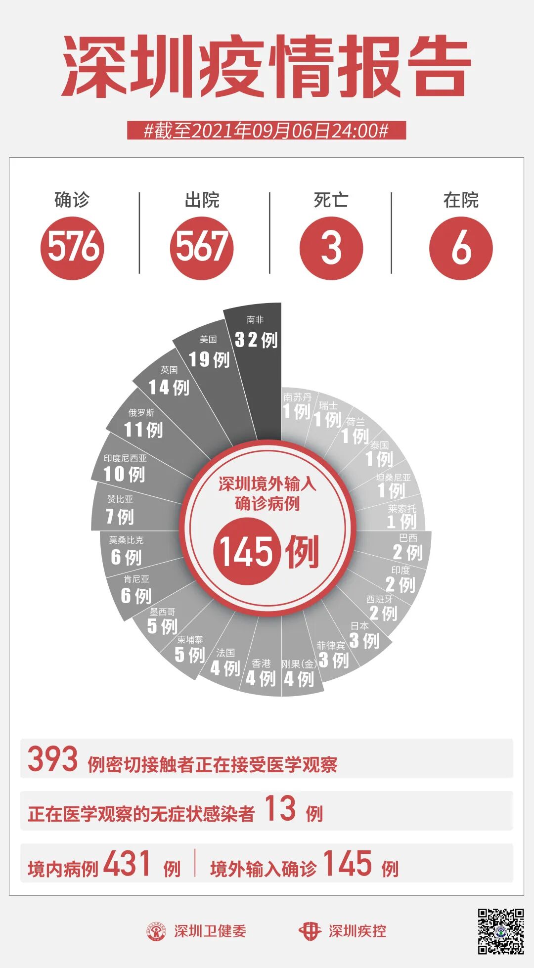 9月6日0-24时,深圳新增1例境外输入无症状感染者。