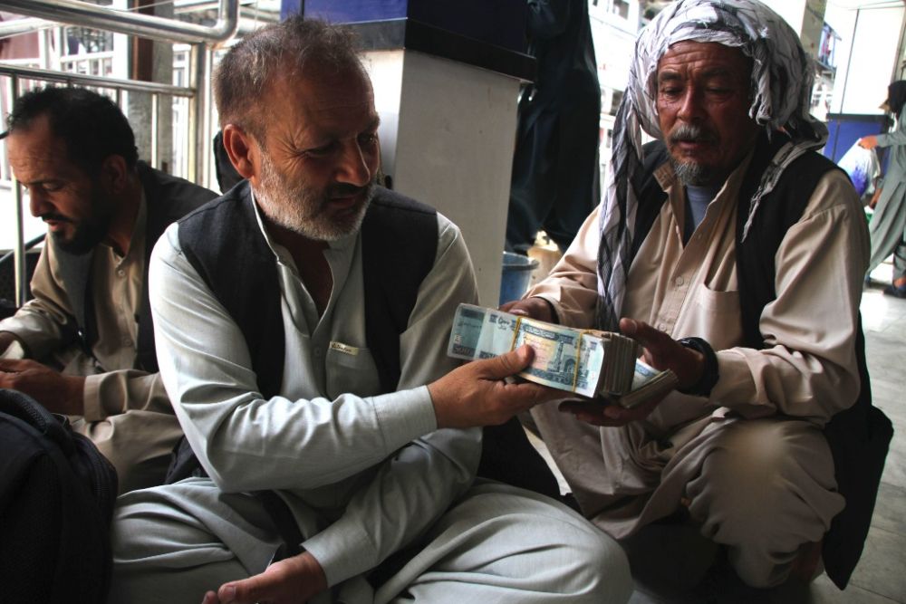 9月4日,阿富汗人在喀布尔一家货币交易市场内兑换货币。(新华社发,塞夫拉赫曼·萨菲摄)