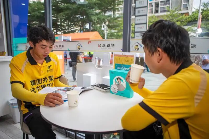 连日来,宝安区“暖蜂服务月”主题活动开展得如火如荼。在各级党群服务中心,为快递员、外卖送餐员、货运司机等灵活就业群体提供暖心服务的场景随处可见。