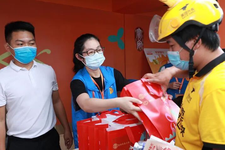 在宝安区福海街道同泰5G工业园里,全市首个直播电商基地“暖蜂驿站”即将投入使用。街道党群服务中心会同妇联、工会等“工青妇”组织,通过设立“暖蜂窗口”、组建“进修学院”、举办“行业沙龙”等形式,让快递员、外卖员等新领域从业人员享受免排队、消费打折、学习进修等优惠福利。