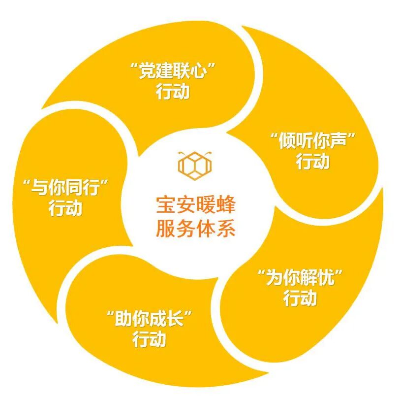 2021年,宝安以“守护美好生活的创造者”为主题,紧扣新兴领域服务需求,从建立系统化、特色化、长效化、可复制、可推广的创新服务机制目标入手,科学构建一套上下贯通、内外衔接、执行有力的“暖蜂服务体系”,通过党建联心、倾听你声、为你解忧、助你成长、与你同行“五大行动”,关怀城市“小蜜蜂”,凝聚治理新力量。