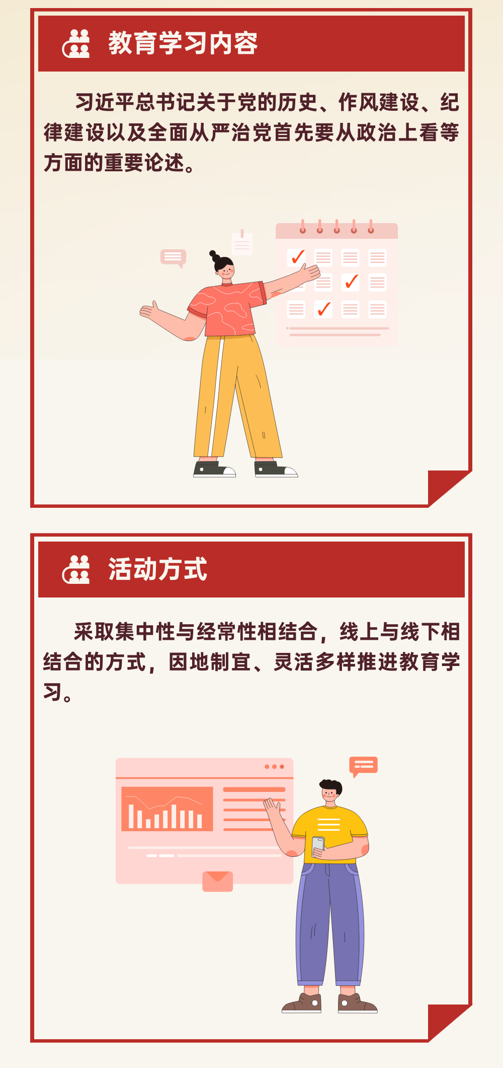 按照区委统一部署,全区将采取集中性与经常性相结合,线上与线下相结合的方式,因地制宜、灵活多样推进教育学习,重点开展十一项活动。