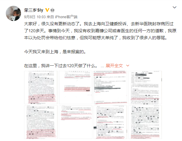 9月8日,“肿瘤治疗黑幕”事件中胃癌患者马某的家属在社交平台发文,称其到上海报案。她在微博中质疑给父亲所输液体的成分不是NK细胞液,并配图可公开的上海市长宁区卫健委执法文书。