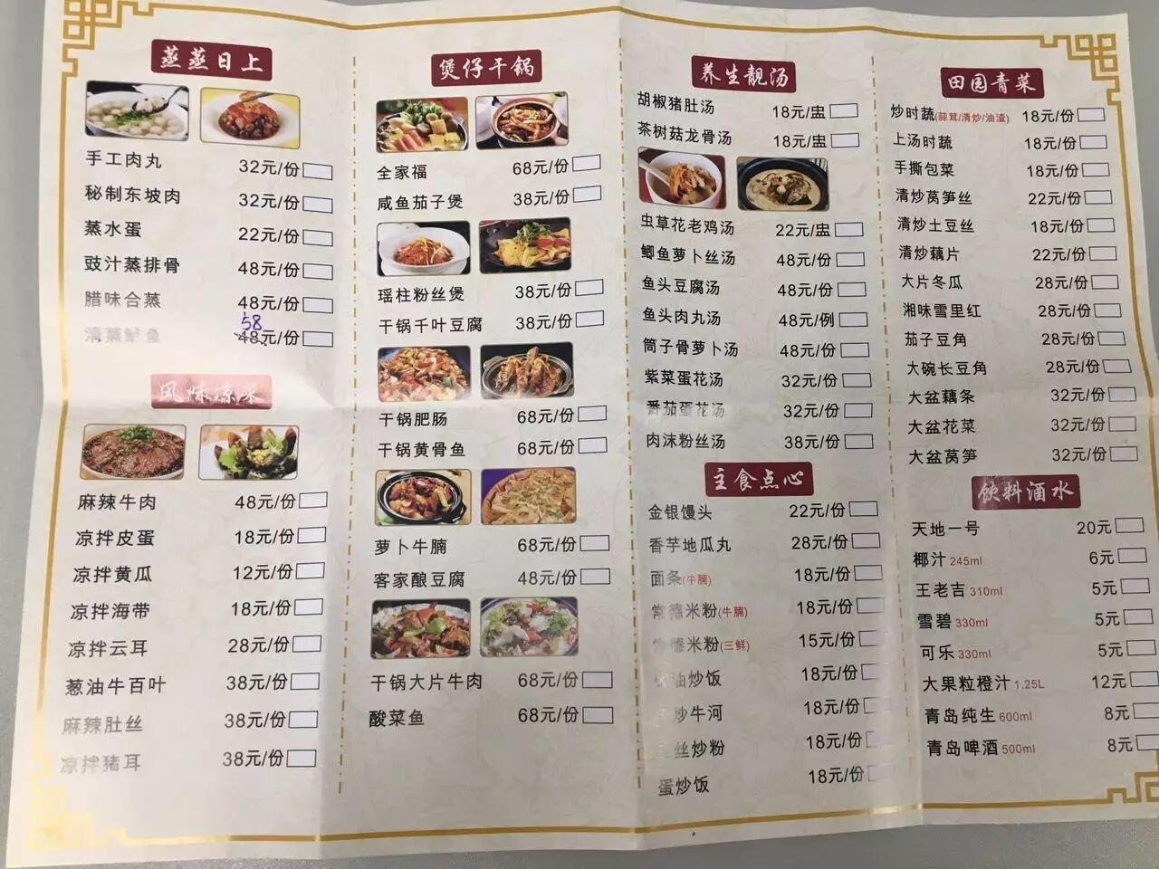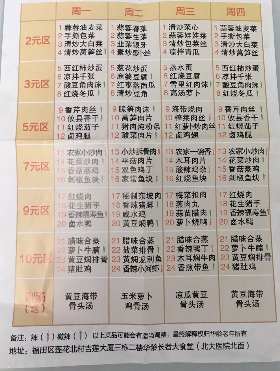 答:目前订餐采用自选模式,食堂每天提供二十几种菜品,每天都不一样。荤菜汤饭可以任意选择、自由搭配,2元、3元、5元、7元、9元、10元都有。每份都送例汤。如果点两荤一素,价格一般在15元左右。小莲君给大家拿到了一手的菜单,仅供参考,详情可咨询订餐热线83227288。