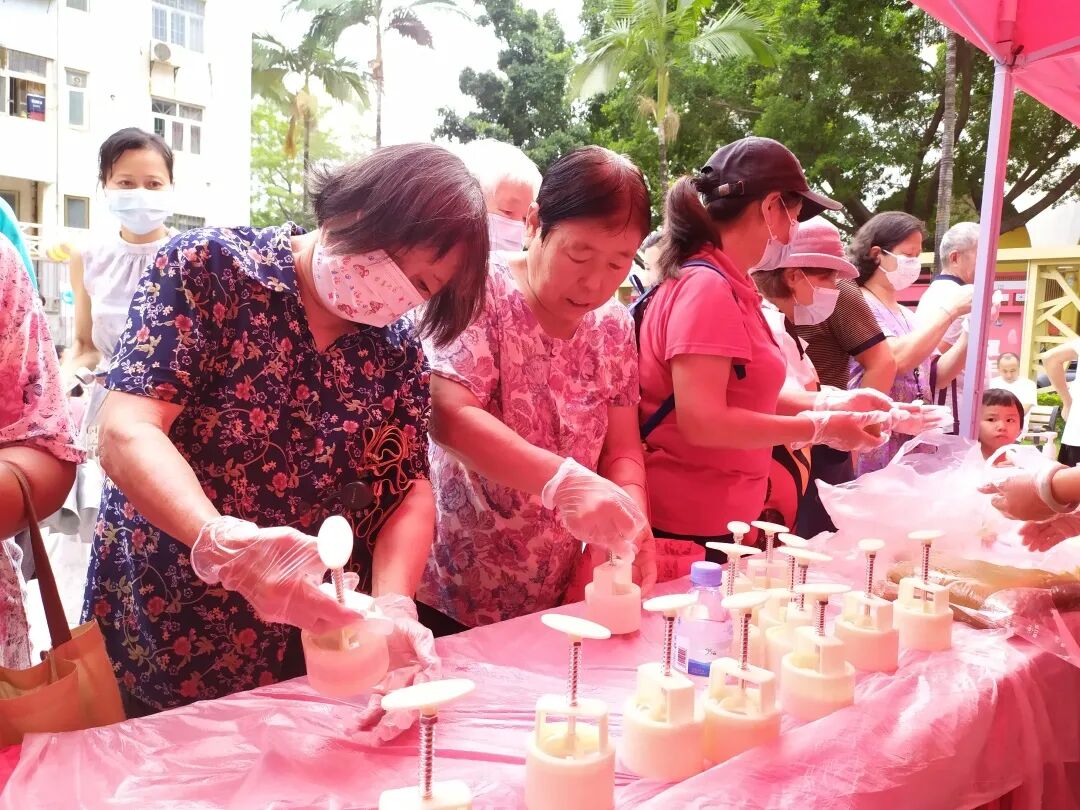 手工月饼DIY区域,数十名居民认真聆听老师讲解月饼制作方法,揉面、包馅、印模、烤制,一个个月饼已见雏形。居民们手中沾满面粉,脸上却难掩成功的喜悦。他们将烤好的月饼打包起来,表示要带回家与家人一同品尝。“民间以月饼相遗,取团圆之义”,一个小小的月饼,蕴含的是居民对团圆喜乐的美好期许,承载的是深厚的故乡情怀。