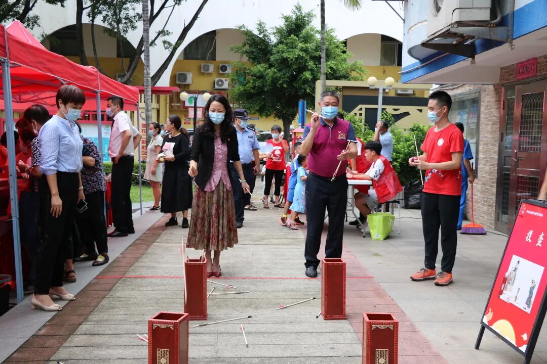 随风飘动的彩灯字谜下,有人因毫无头绪而皱眉苦思,有人因灵光乍现而喜笑颜开,无论是老人还是小孩,都沉浸在奥妙的文字联想游戏中,品味着灯谜文化智慧、典雅而又诙谐的独特风采;传统投壶活动中,居民们手持“利箭”,凝神聚气,用力一掷,箭矢在空中划过一道抛物线,稳稳落入壶中。围观的人群中响起阵阵热烈的掌声,胜利者也高举着奖品,欢呼起来;手工诗词贴画活动里,小朋友们安静地坐在桌旁,认真细致地拼贴着古诗词场景......