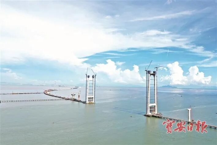 一桥飞架,湾区融合。深中通道又迎来一个重大建设节点,蜿蜒婀娜的身姿慢慢“浮出水面”,正在伶仃洋上描绘一道独特的风景线,更为粤港澳大湾区发展插上腾飞的翅膀。深中通道又好又快建设,拉近珠江口两岸的时空距离,实现大湾区互联互通,加速资源要素流动,宝安湾区交通枢纽的作用未来将更加突出。