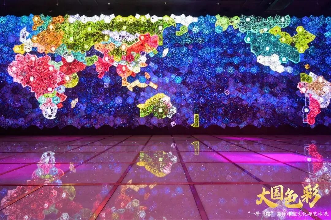 9月22日,2021第十七届中国(深圳)国际文化产业博览交易会深圳珠宝聚集区(水贝珠宝)分会场开幕式在IBC格式时尚发布中心举办。被吉尼斯世界纪录认证为全球迄今“面积最大、珠宝种类最丰富”宝石壁画作品的IBC世界宝石墙在会上带来《我和我的祖国》全新光影秀。