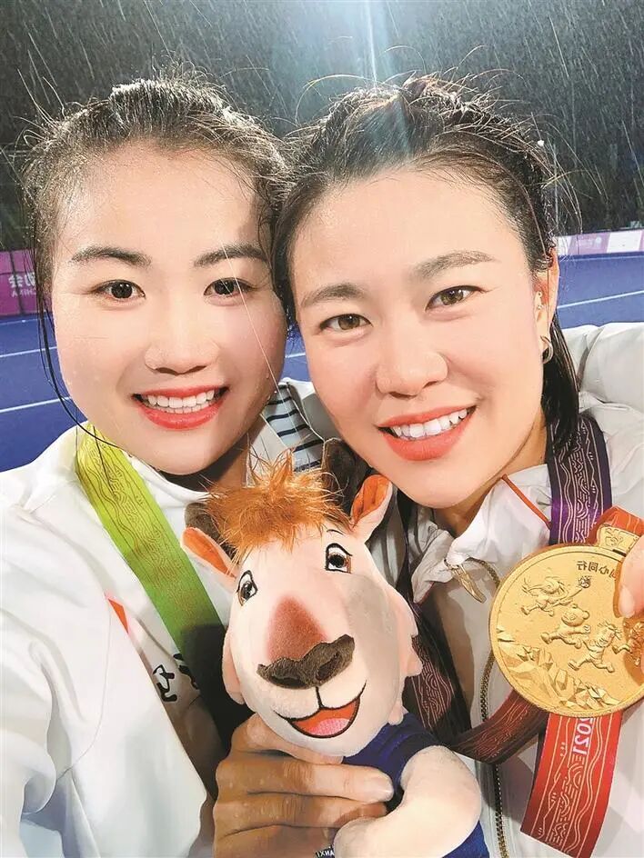代表联合队夺得女子曲棍球项目冠军的深圳选手梁美玉(右),已经美出圈了