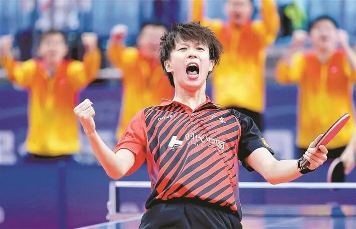 ▲为广东队夺得乒乓球男团冠军的林高远在比赛中。新华社图片