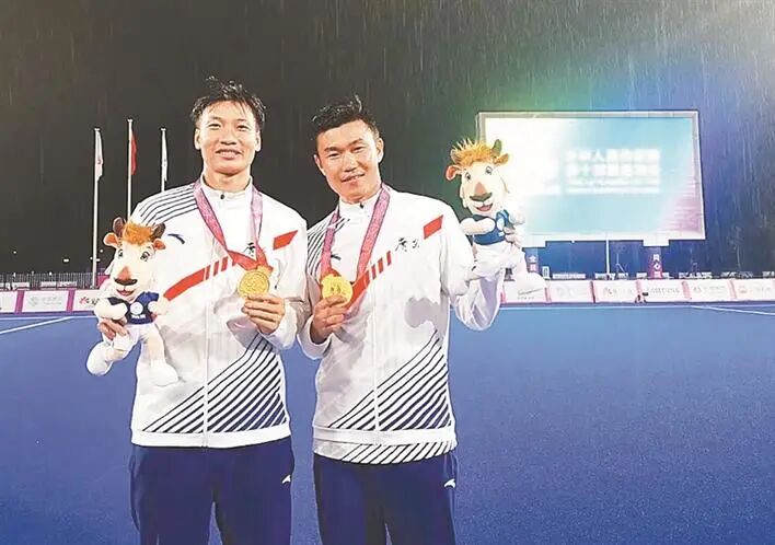 广东男子曲棍球队中的两名深圳选手,左为周福艺,右为涂元林
