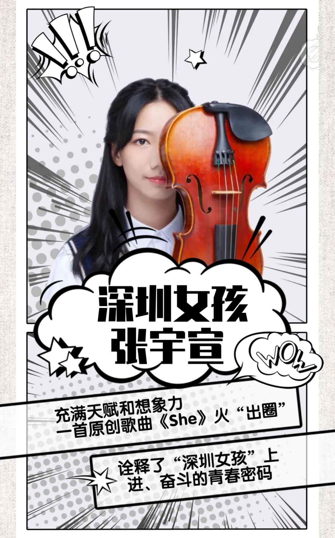 创作简介:深圳是一座年轻的城市,众多优秀的年轻人才。" 五四 " 青年节为配合深圳青春向上、朝气蓬勃创新发展主题宣传,遴选 6 位深圳富有代表性的青年作为形象代表,(后因为年龄不符合青年标准,去掉向交警致敬的小姐妹)配以真人照片 + 手绘背景的穿越效果,以简洁的文笔,点出青春亮点,用《少年》这首深入人心的音乐加持,设计成 H5, 在5月4日当天在晶报官微 APP 推送,获得全网33万的阅读量。