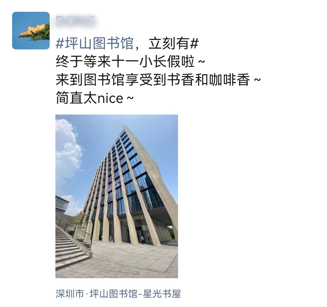 打卡坪山文旅任意地标,与地标合影留念,配上“XX(地点全称)+立刻有”的话题文字表述发到微信朋友圈,并将合影照片、文字截图、个人信息(姓名+联系方式)发送到“坪山发布”微信公众号,经后台工作人员审核后即可领取惊喜礼品。