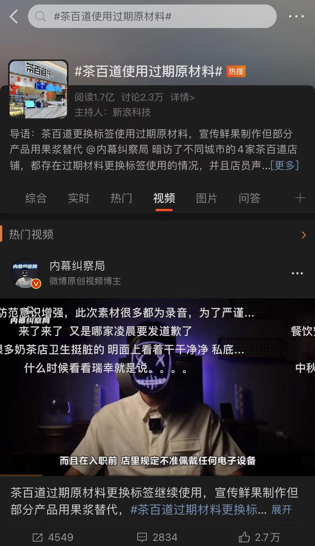 昨晚茶百道又一次上了热搜,这一次仍然是食品安全问题:
