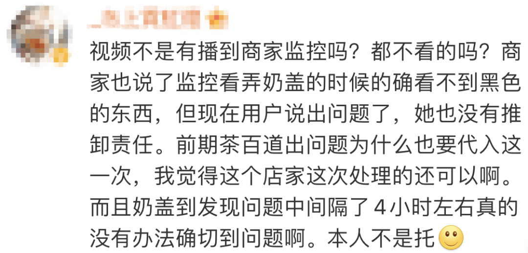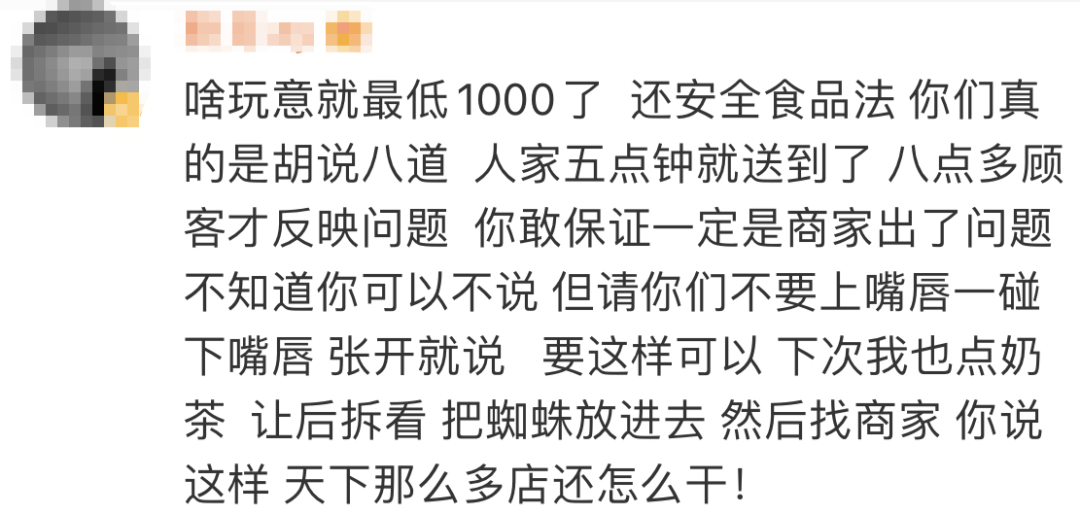 10月6日,浙江宁波一顾客称,从慈溪一家茶百道点外卖饮品时,在其分装的奶盖中发现蜘蛛。