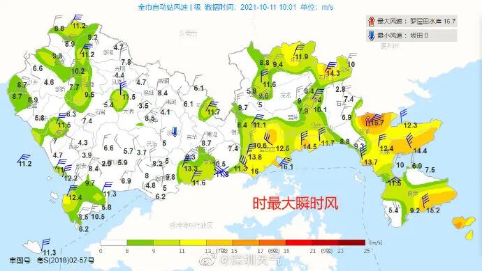 今年第18号台风“圆规”(热带风暴级)11日17时位于深圳东南方约980公里的太平洋洋面,预计11日夜间进入南海,12日夜间至13日凌晨从距离我市最近偏南方300-400公里左右的海面掠过。