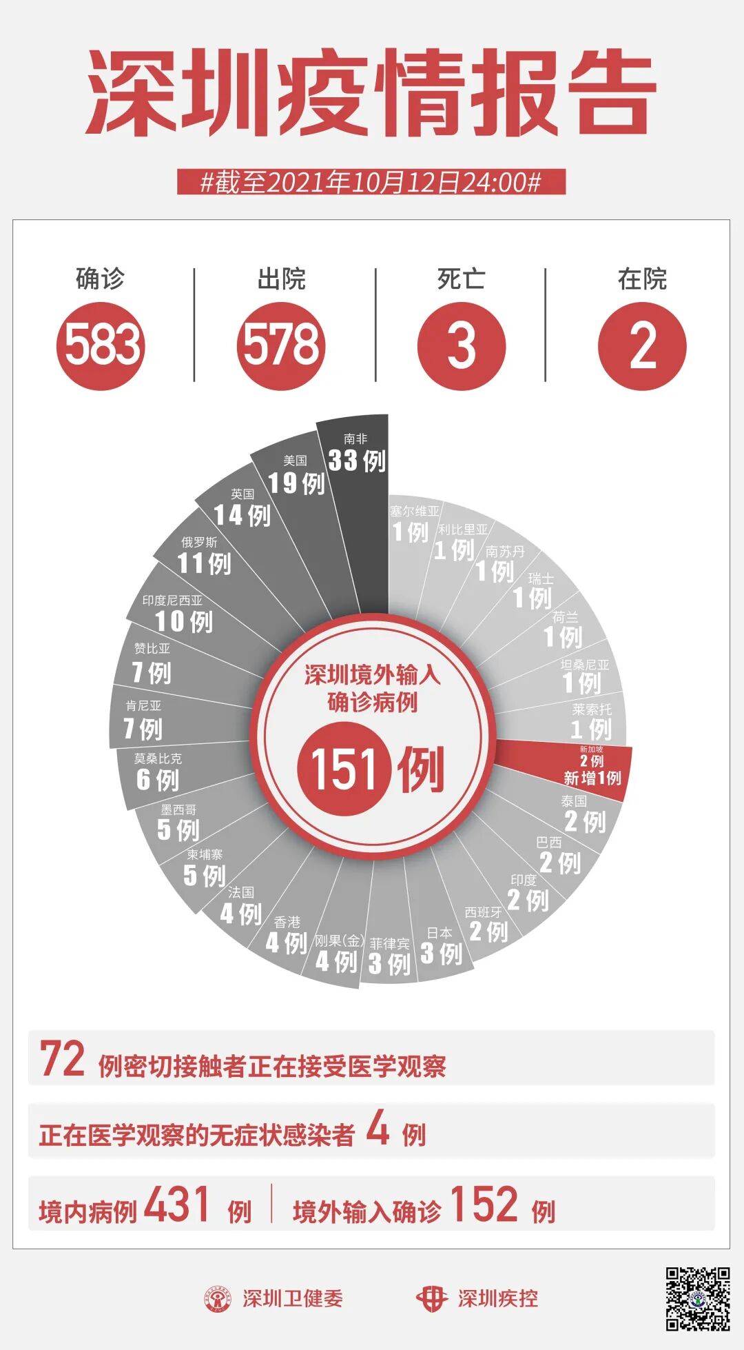 (原标题《10月12日深圳新增1例境外输入确诊病例》)