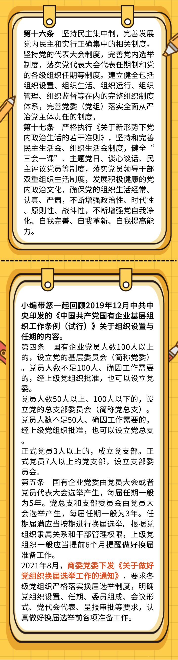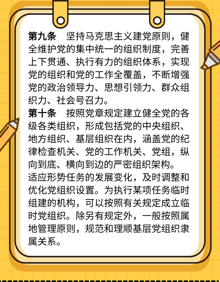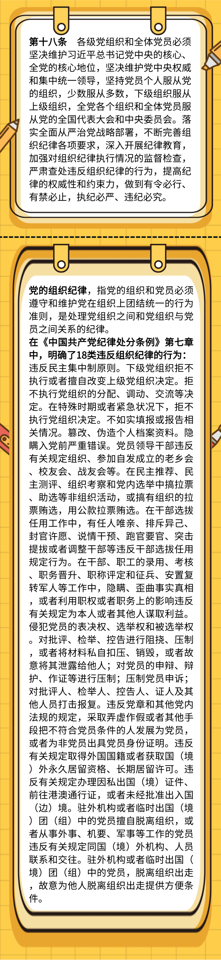小编分三期为大家进行《条例》的学习解读,内容涵盖党的组织体系建设、干部工作、人才工作等方面的具体要求。本期带领大家一起学习解读《条例》的第三章党的组织体系建设部分,希望大家通过本期的学习可以掌握党的组织体系建设中关于组织架构、组织功能、党员队伍、组织生活和组织纪律等内容及要求。